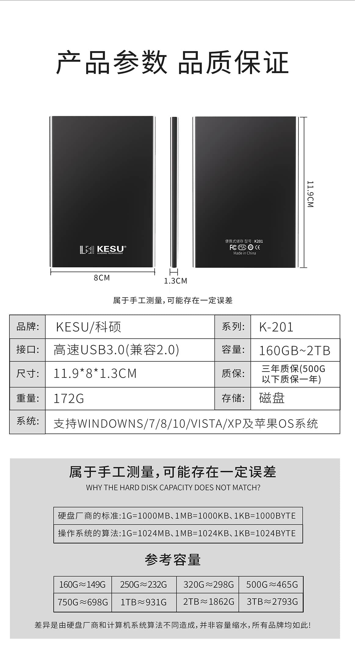 产品型号:2.5寸移动机械硬盘